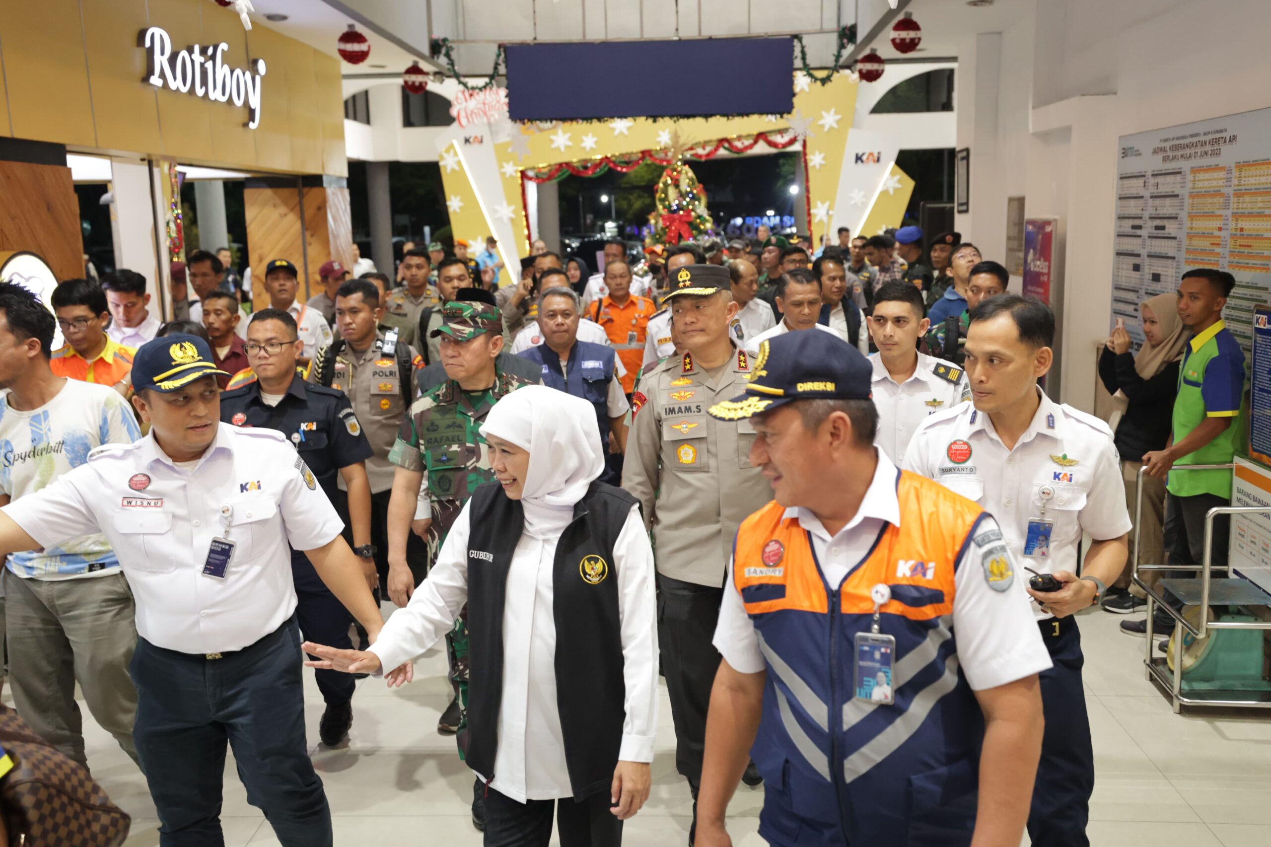 Menurut Khofifah, pihaknya bersama TNI Polri dalam hal ini Polda Jatim dan Kodam V Brawijaya bersinergi dan ada proses yang memang harus diantisipasi, dimana lonjakan penumpang baik yang berangkat maupun yang datang, di seluruh titik-titik Stasiun.