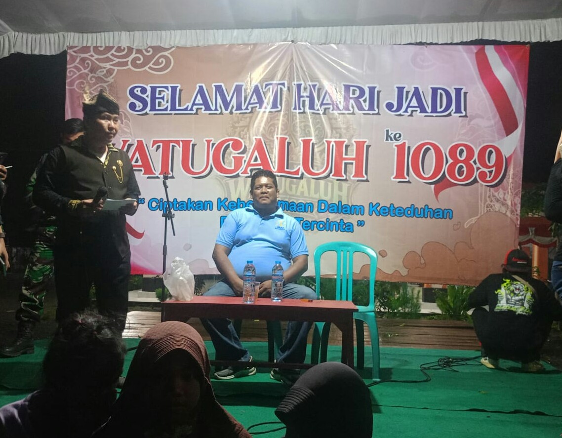 ” Atas nama Pemerintah Desa Watugaluh, Kami mengucapkan terima kasih kepada seluruh warga masyarakat Desa Watugaluh yang telah antusias mengikuti kegiatan tahunan ini secara guyup rukun saling bergotong royong demi terlaksananya kegiatan peringatan hari Jadi Desa Watugaluh yang ke 1089 tahun 2026 ini,sekaligus sedekah Desa yang berjalan meriah penuh hikmad,” tuturnya