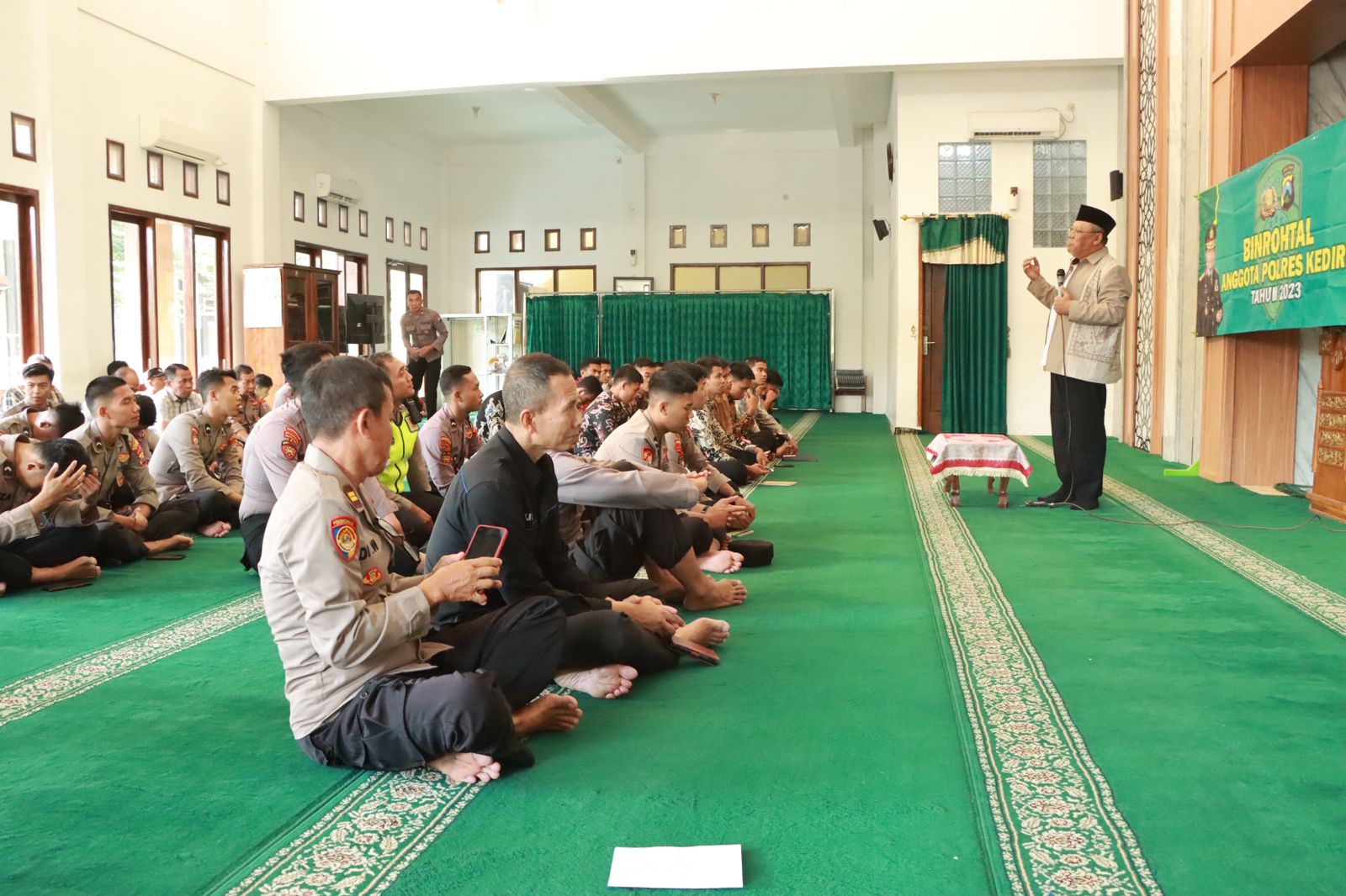 Kapolres Kediri AKBP Agung Setyo Nugroho, S.I.K. melalui Kasihumas Polres Kediri AKP Uji Langgeng menyampaikan pentingnya binrohtal dalam membentuk karakter yang lebih humanis dan religius bagi anggota kepolisian.