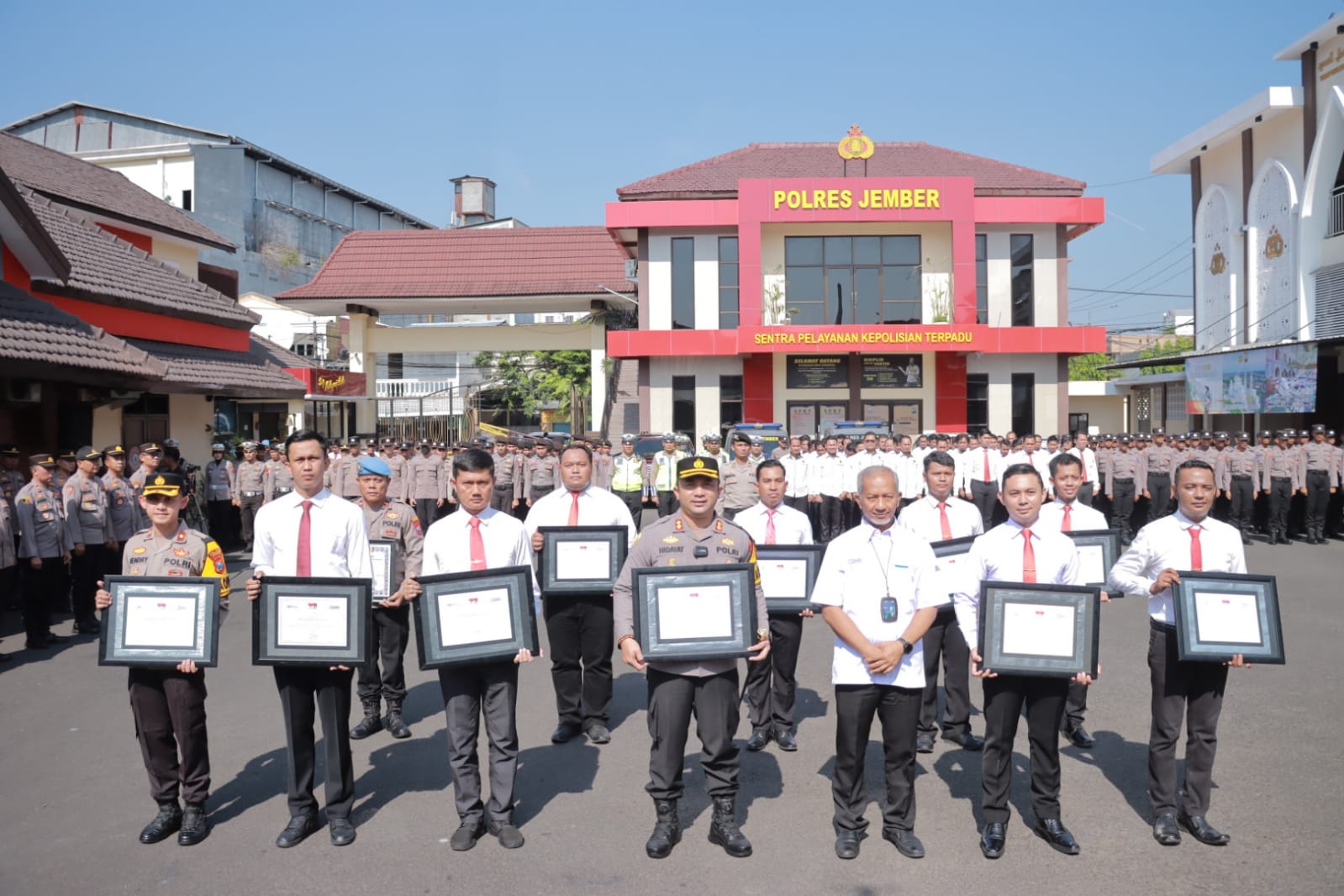 Upacara pemberian penghargaan berlangsung dengan khidmat di halaman Mako Polres Jember, yang diserahkan langsung oleh Kepala Cabang BRI, Mohamad Sukari.